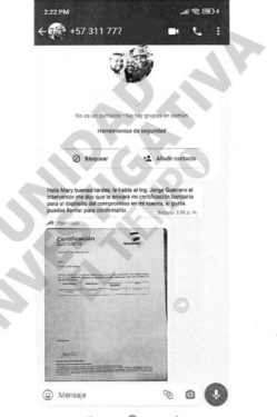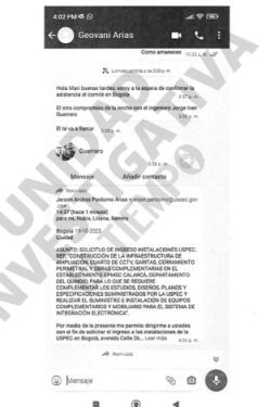 Esta es una de las conversaciones en las que aseguran el interventor estaría haciendo cobros. Foto tomada de El Tiempo