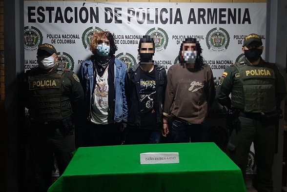 Una vez reconocidos e identificados, se le dan a conocer sus derechos como personas capturadas por el delito de daño en bien ajeno y son dejados a disposición de Fiscalía URI de Armenia.