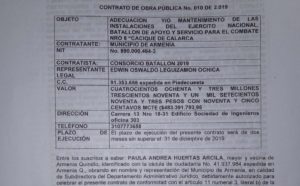 Periodismo Investigativo descubrió que los dos contratos que la Alcaldía de Armenia destinó para obras en el Batallón de servicios No 8 Cacique Calarcá, suman más de mil doscientos millones de pesos ($ 1.242’391.793,65)