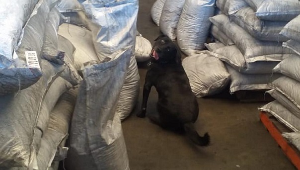 “La cocaína había sido mezclada en caucho granulado, en una carga de 51.990 kilos. Nuestro canino Dora realizó el procedimiento de control y dio la señal de positivo”, señaló el general Ramírez.