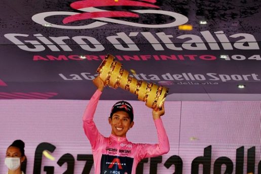 May 30, 2021 – Foto de archivo del ciclista colombiano del equipo Ineos Grenadiers Egan Bernal celebrando tras ganar el Giro de Italia – REUTERS/Jennifer Lorenzini