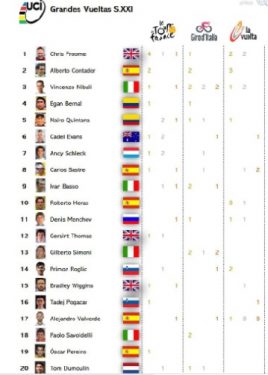 En el siglo XXI el claro dominador, acorde a ‘Clasificaciones Históricas’, es el británico Christopher Froome. El hoy corredor del Israel Start-Up Nation tuvo su época dorada vistiendo los colores el INEOS Grenadiers (anteriormente conocido como Team Sky), donde alcanzó 11 podios en grandes vueltas y siete trofeos: cuatro en el Tour (2013, 2015, 2016 y 2017), uno en el Giro (2018) y dos en la Vuelta (2011 y 2017).