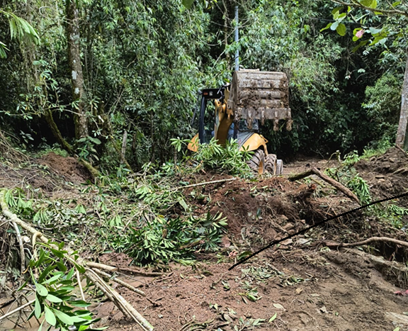 Para ello, se realizó el traslado de maquinaria amarilla, incluyendo una retroexcavadora y una volqueta, con el fin de adelantar labores de remoción de material y recuperación de las vías, facilitando así la movilidad en los sectores impactados.