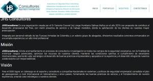 Entre los servicios que ofrece HJS Consultores se encuentran que “asesoramos en Seguridad Física y Electrónica, adelantamos investigaciones en el campo de la Inteligencia Empresarial, filtración de información, Hurto, Extorsión, Secuestro, delitos Informáticos, ataques cibernéticos y piratería terrestre”.