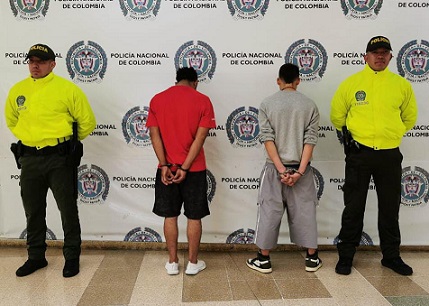 Foto portada: Los dos capturados por hurto en Circasia, tomada de comunicaciones Policía Quindío