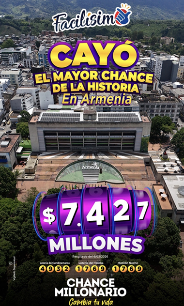 La suerte eligió una vez más al corazón de Colombia. El histórico acumulado de $14.855.811.768 de Chance Millonario cayó la noche de este 6 de abril, dejando a dos nuevos ganadores en el país: uno en Floridablanca (Santander) y el otro, para orgullo de nuestra región, en Armenia (Quindío).