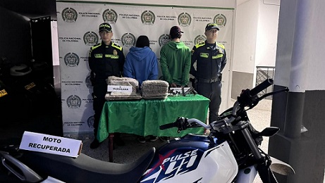 Así mismo, se verifica en la base de datos el número de motor de la motocicleta ya que no posee placa y encuentran un reporte negativo por hurto. Los sujetos de 21 y 25 años que no poseen antecedentes, fueron capturados por los delitos en mención, siendo dejados a disposición de la Fiscalía URI en turno, junto a las armas de fuego, las 33 libras de estupefaciente y la motocicleta.