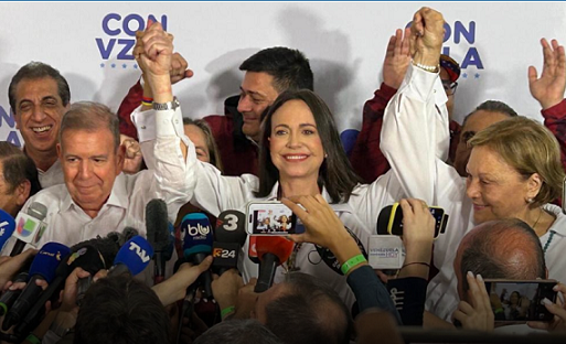 La líder opositora y el candidato presidencial Edmundo González afirmaron que ya tienen en su poder el 73.20 % de las actas.