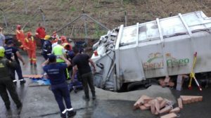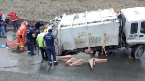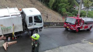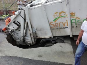 El vehículo recolector de basuras placas VKI 789 afiliado a la empresa SERVI ASEO S.A E.S.P. de La Tebaida, se hundió en vía pública del municipio de La Tebaida Quindío, dejando como saldo un operario herido.