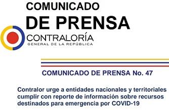 Contralor urge a entidades nacionales y territoriales cumplir con reporte de información sobre recursos destinados para emergencia por COVID-19