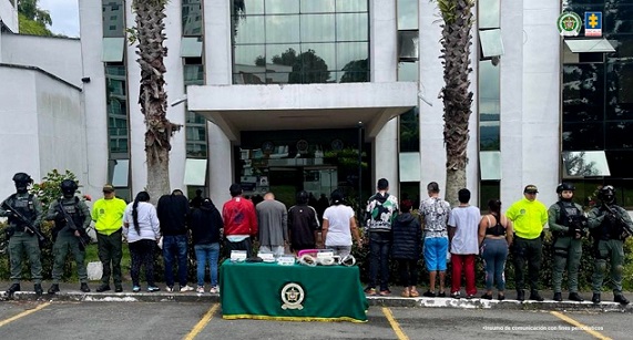 Las detenciones se cumplieron durante 12 diligencias de registro y allanamiento cumplidas en los Barrios Puerto Espejo, Gibraltar, La Pavona, Pradito, Santander, Colinas y Centenario en Armenia (Quindío) y La Isabela en Caicedonia (Valle).