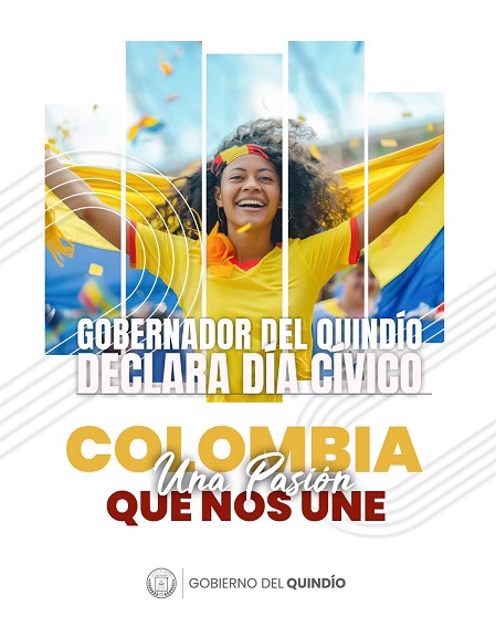 Con el fin de apoyar y reconocer la excelente labor de nuestra selección Colombia en la Copa América, el Gobernador del Quindío, Juan Miguel Galvis Bedoya, estableció a través del decreto 879, día Cívico el lunes 15 de julio.