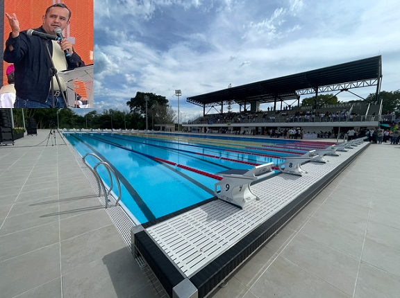 Gobernador del Quindío Juan Miguel Galvis Bedoya en inauguración del Complejo Acuático de Armenia