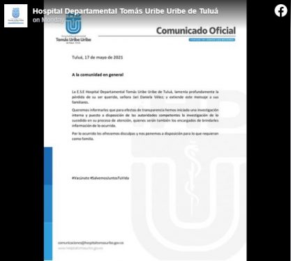 Entretanto, el hospital departamental Tomás Uribe Uribe escribió un comunicado en el que lamentó la muerte de la niña y aseguró que el caso es materia de investigación por parte de las autoridades competentes.