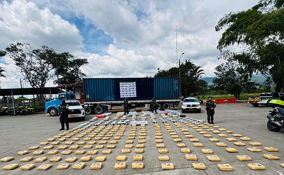 El segundo hecho se ejecutó, momentos en que la patrulla de tránsito realizaba actividades preventivas sobre esta misma vía, donde al verificar un automotor tipo tractocamión, se evidenció que el contenedor tenía doble pared, este vehículo fue trasladado hasta las instalaciones de la seccional de tránsito para verificar el contenido, hallando en su interior un total de 1.150 kilogramos de marihuana.