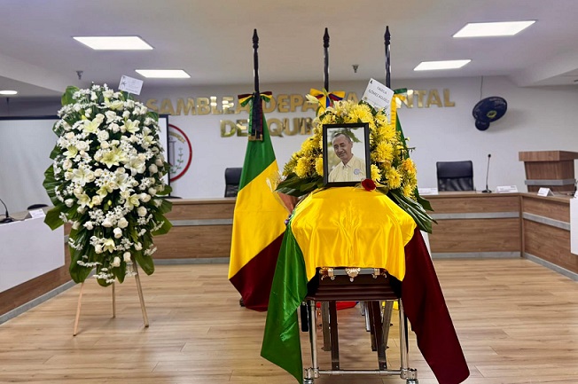 Foto portada: Restos mortales del periodista Oscar Gómez Agudelo en Cámara Ardiente en el recinto de la Asamblea Departamental del Quindío
