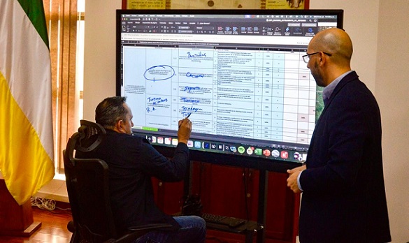 Se trata de la ubicación de 12 pantallas al ingreso de cada uno de los municipios quindianos, a través de las cuales se compartirá información general que oriente a la ciudadanía; igualmente comprende la localización de cámaras para hacer seguimiento al tránsito vehicular y al aforo de personas en las plazas principales de las localidades.