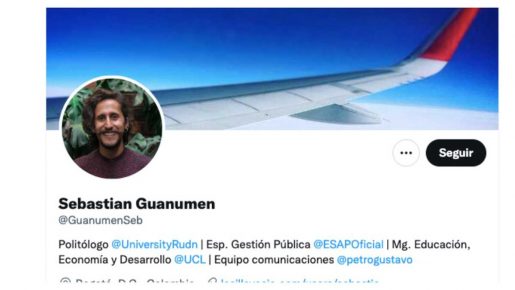 En su cuenta en Twitter, Sebastian Guanumen se identifica como integrante del equipo de comunicaciones de Gustavo Petro.