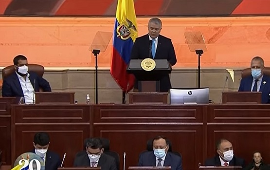 Durante el discurso fue respaldado ampliamente por su bancada, al igual que la fuerza pública, que se llevó un prolongado aplauso.