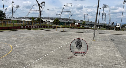 Foto portada: Cancha de basquetbol con manchas de sangre en el piso, exclusiva de Periodismo Investigativo del Quindío